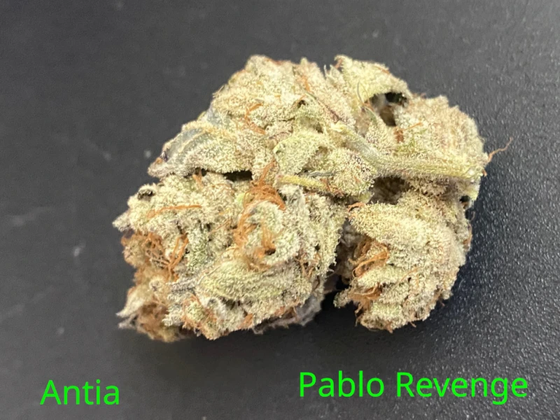 Pablos Revenge is a hybrid weed strain made from a genetic cross between Animal Mints and Sherb Cake. This strain is 60% indica and 40% sativa. Pablos Revenge is a potent and exotic strain that has a sweet, peppery, and gassy flavor and aroma