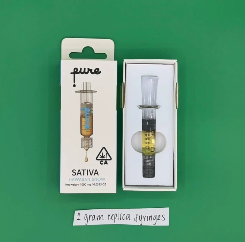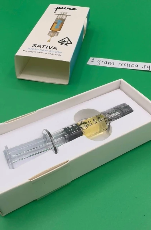-We fill our syringes with 1 gram of straight distillate (Delta-9, Category 3) and Cannabis Derived Terpenes (less than 10% per syringe; which is the required minimum to make sure they can hit) .. We do not use ANY cut, such as CBD, or anything of that nature - The packaging we use are replicas of the real brands in the dispensaries, but the quality inside is just as good, if not better .. The hardware itself is very reliable and quality made .. The syringes will come in the boxes - with tubes, all the stickers, and the brands that are supposed to have scanning barcodes will have them! These syringes have many uses .. Easily measure out the ML precisely to know exactly how much is in your edibles, or fill your joints with a clean tasty snake - Cool to squeeze right into a dab rig as well .. Use your imagination and harness your inner wizard! PLEASE NOTE that it is impossible to keep track of all the different replica brand strains; Simply request "Indica, Sativa, Hybrid, and/or a Mix" when asking for specifics! We will send as many flavors as possible - If this is an issue, please order our "PP BRAND" syringes where strains are specific!