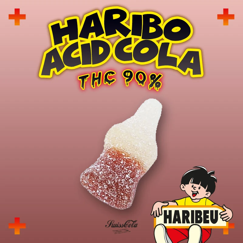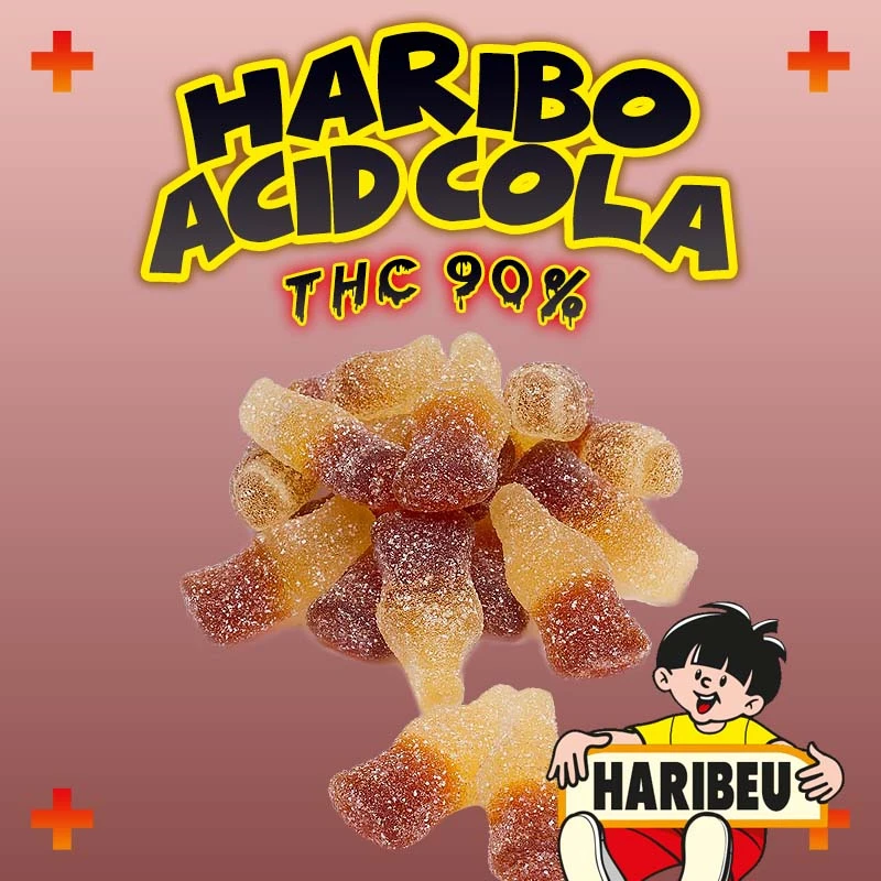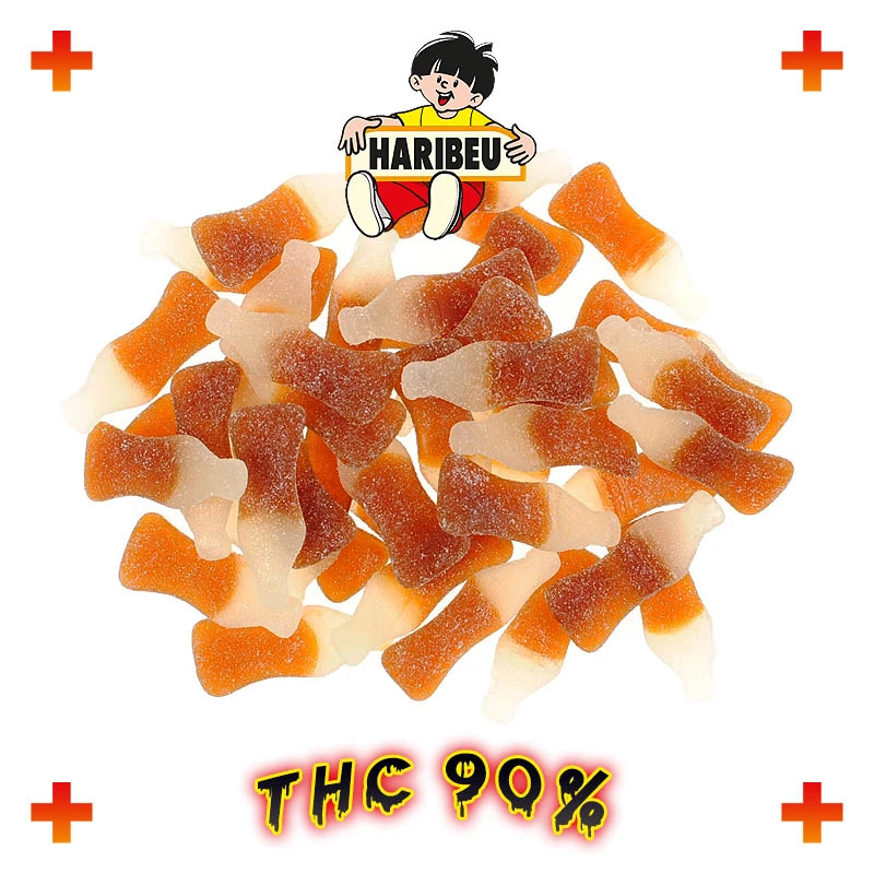 The well-known Haribo candy with the taste of lemony and tangy coca cola, with a concentration of 90% THC from the Haribeu brand, sale of candy by the piece.