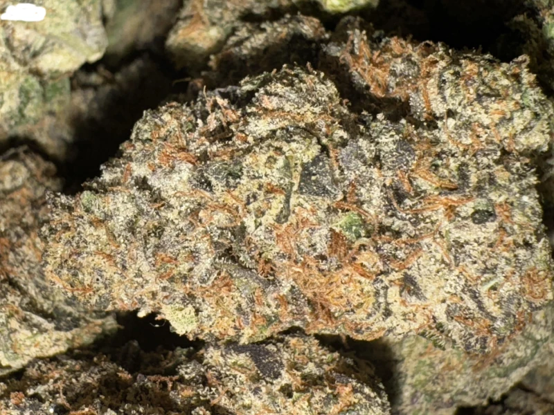Medium sized, purple and dark green nugs, absolutely covered with thick layers of frost.