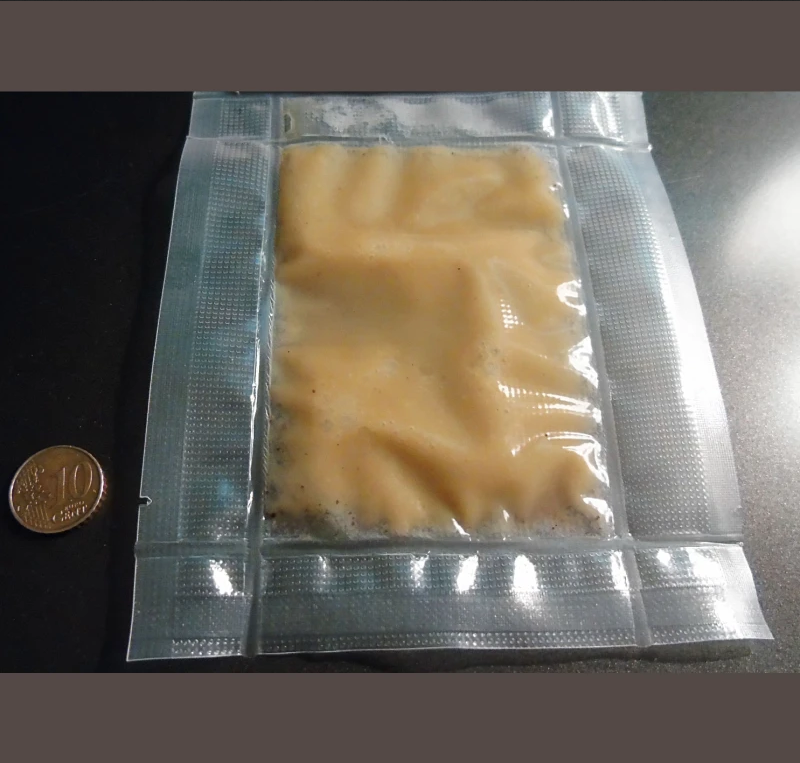 Wir haben in 250Gramm Butter 5,5Gramm Hasch aufgelöst. Das Hash hat eine Qualität von mindestens 60%. Das können wir genau sagen, weil wir es selber herstellen. Das bedeutet, dass wir mindestens reinste 3000mg in 250g Butter haben.