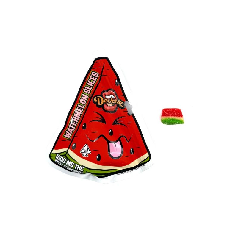 Devour’s 1500mg Edibles are potent, flavorful, and crafted for experienced users who want a strong, reliable edible experience. Each bag delivers 1500mg total THC, with 10 pieces dosed at 150mg each, making them perfect for those who need higher strength without sacrificing taste or consistency.