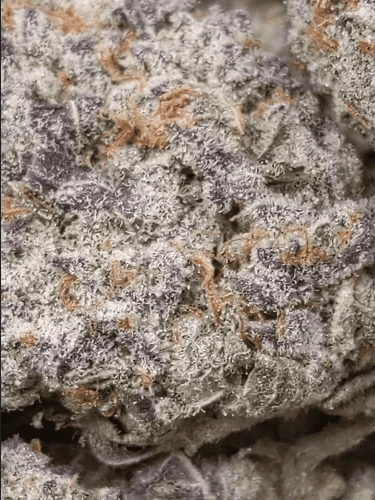 The high from Mochi is designed to relax and uplift, starting with a euphoric burst that quickly transitions into a soothing calmness throughout your body. As you settle in, expect a wave of creativity followed by a deep sedative effect that might just send you into a peaceful slumber. With an average THC level of 27%, Mochi is ideal for those coping with chronic pain, depression, insomnia, and stress. Visually, the dense, spade-shaped nugs are a sight to behold, showcasing vibrant forest green hues with rich purple undertones, bright orange-red hairs, and a sparkling coating of purple-tinted trichomes. Let Mochi guide you to a blissful state of relaxation and joy!