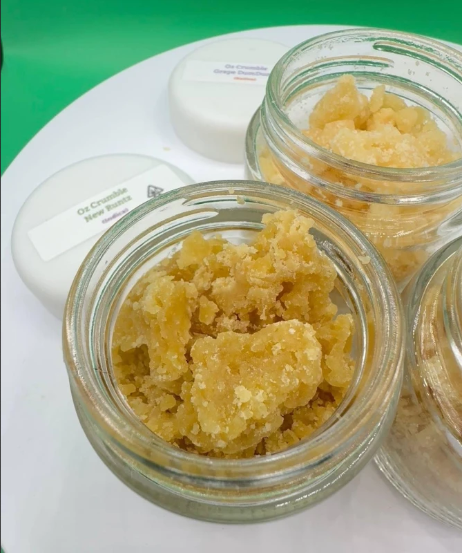 -Blocky, chunky, chalky-yet dense, honey-comb consistent concentrate that is derived from nugged flower (NON-CRC) .. This is perfect to top off a backwood; With an overload of potent smelling, gassy tasting, crumbled up little concentrate flooding the blunt .. Definitely also cool to dab on, but i would say this is a party concentrate; You and all the homies can get dab lit real quick! The concentrate comes in a glass jar! Certain strains/batches may be slightly darker or lighter than other ones .. This is due to us not using CRC to change colors!