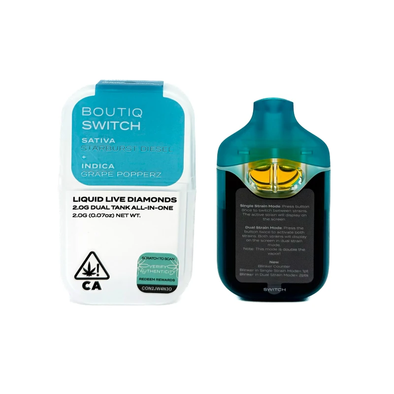 2g Boutiq Switch V4 DisposableLiquid Live Diamonds Dual Tank