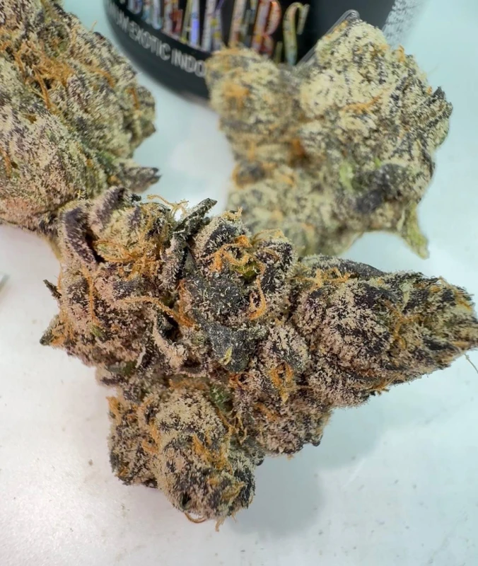 "Jawbreakers" is a wizard tier strain grown by "Traditional" - This strain is one of their main starters in their lineup, meaning it has its own jar! "Jawbreakers" is a true hybrid, made from crossing "Irene" & "Sunset Sherb #18"! One of the heavier indicas "Traditional" cultivates; Described as "Straight out of the Wonka factory, this Everlasting Terpmonster smacks you in the face with a cedar 2x4 and wakes you up with lavender aromas"! This strain has incredible berry/fruity and floral flavors. "Jawbreaker" effects include feeling happy, relaxed, and talkative - Perfect for dealing with symptoms associated with depression, pain, and nausea! The nugs are beautiful - It's mainly a dark purple base on the nug, with different shades of vibrant purple inside the nug, multiple different colored greens peeking through, and lots of orange hairs - The spiraled nugs are also covered in kief! The nugs are so light, yet dense - So fluffy and squishy, yet solid - These are some of, if not, the best flowers of all time! Nug size is literally perfect, every nug looks as it should; Pretty much a large medium sized nug! "Jawbreakers" by "Traditional" is one of the best strains of all time; These flowers are so strong, clean, and pure - 10/10 nose, taste, and overall structure!