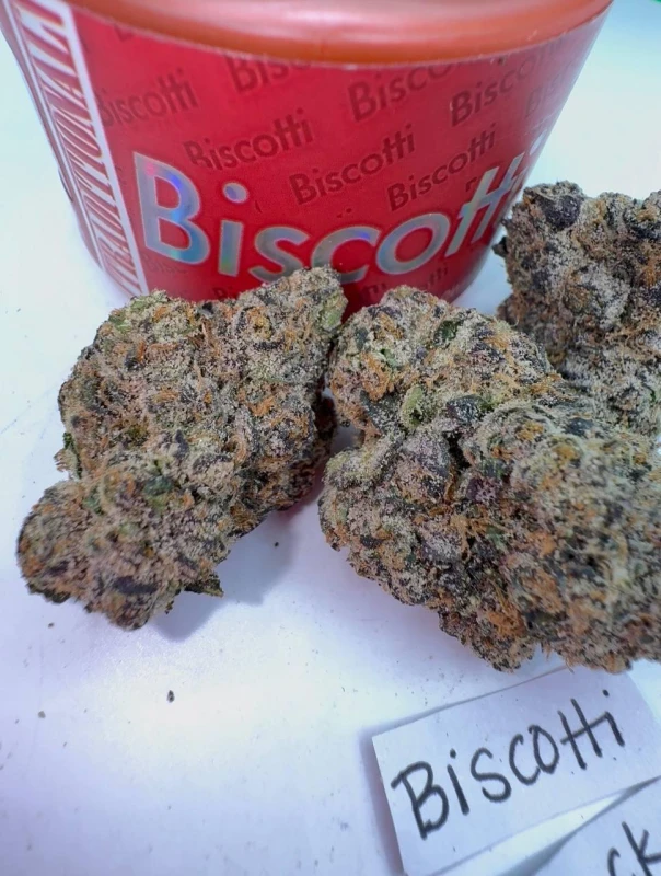 "Biscotti" is a wizard tier strain grown by "Traditional" - This strain is one of their main starters in their lineup, meaning it has its own jar! "Biscotti" is an indica-dominant hybrid, made from crossing "Gelato #25" x "Sour Florida OG"! This strain produces a cerebral high that leaves the wizards feeling relaxed, creative, and buzzy from head-to-toe! The effects of "Biscotti" are known to creep up on consumers, so it's best to take it slow with this strain. In terms of flavor, "Biscotti" tastes like sweet cookies with undertones of diesel. Patients turn to this strain to relieve symptoms associated with stress, anxiety, and depression. The striking trichome coverage of this strain gives it top shelf appeal. Deep purples covering the entirety of the nug is basically what this strain has to offer - There are lots of orange hairs, and a nice amount of lime green showing - The nug is literally covered in white frost! The nugs are so light, yet dense - So fluffy and squishy, yet solid - These are some of, if not, the best flowers of all time! Nug size is literally perfect, every nug looks as it should; Pretty much a large medium sized nug! This strain is a straight flex! Roll it up with your favorite wizard bros, and immediately watch everyone tap out! "Biscotti" by "Traditional" is one of the best strains of all time; These flowers are so strong, clean, and pure - 10/10 nose, taste, and overall structure!