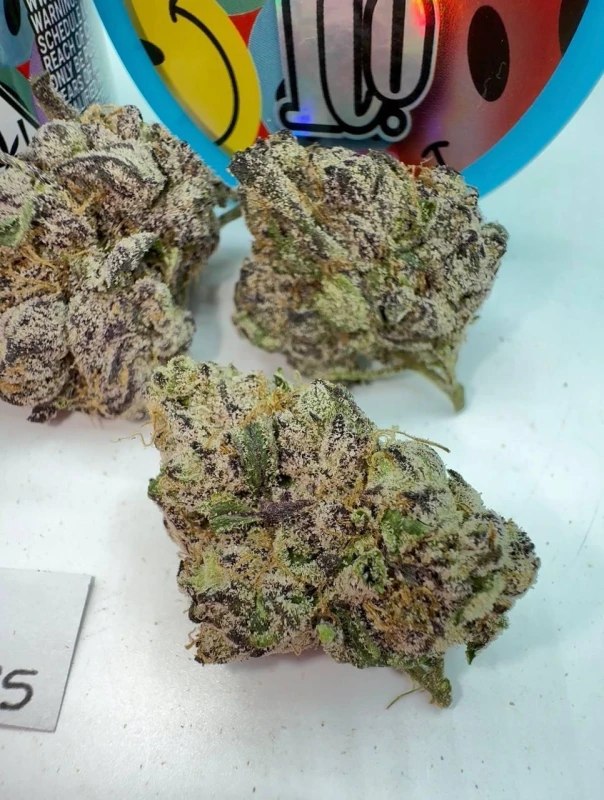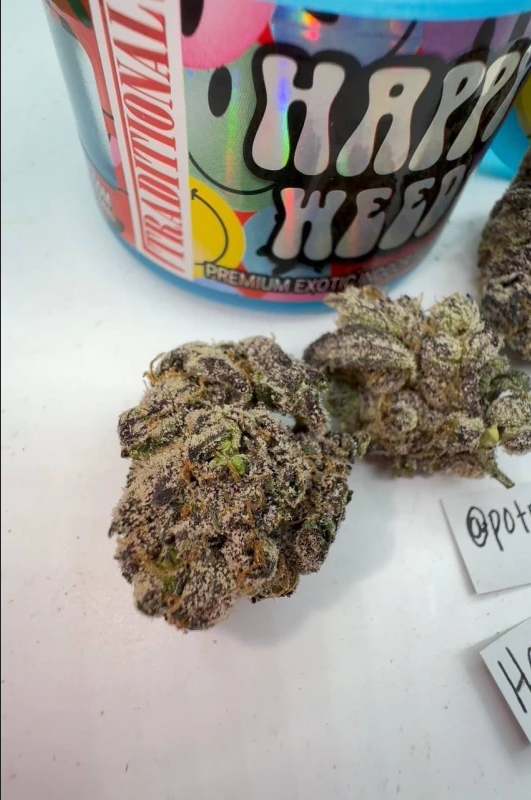 "Happy Weed" is a wizard tier strain grown by "Traditional" - This strain is one of their main starters in their lineup, meaning it has its own jar! Don’t worry, be happy with this exotic cross by the cultivators at Traditional! "Happy Weed" is a true hybrid strain that comes from unknown proprietary genetics. This flower has a gassy, creamy, earthy, and spicy flavor to its scent and flavor! Happy Weed is purported to provide a euphoric, social, and focused effect. Quickly after taking a few hits, you will feel a warm body buzz come on! You will notice it brings down stress levels very fast, and gets you ready to unwind! Probably not the best to smoke throughout the day if you can’t function on heavy strains, but if you’re looking for a good nightcap and anti-stress pack, this is it! The nugs are beautiful - They are the perfect mix of vibrant purps, different shades of gorgeous green, and the perfect amount of orange hairs; Covered in white frost, of course! Pretty much the perfect looking hybrid! The nugs are so light, yet dense - So fluffy and squishy, yet solid - These are some of, if not, the best flowers of all time! Nug size is literally perfect, every nug looks as it should; Pretty much a large medium sized nug! "Happy Weed" by "Traditional" is the perfect hybrid pack, and is very budget friendly when compared to other "Traditional" strains!