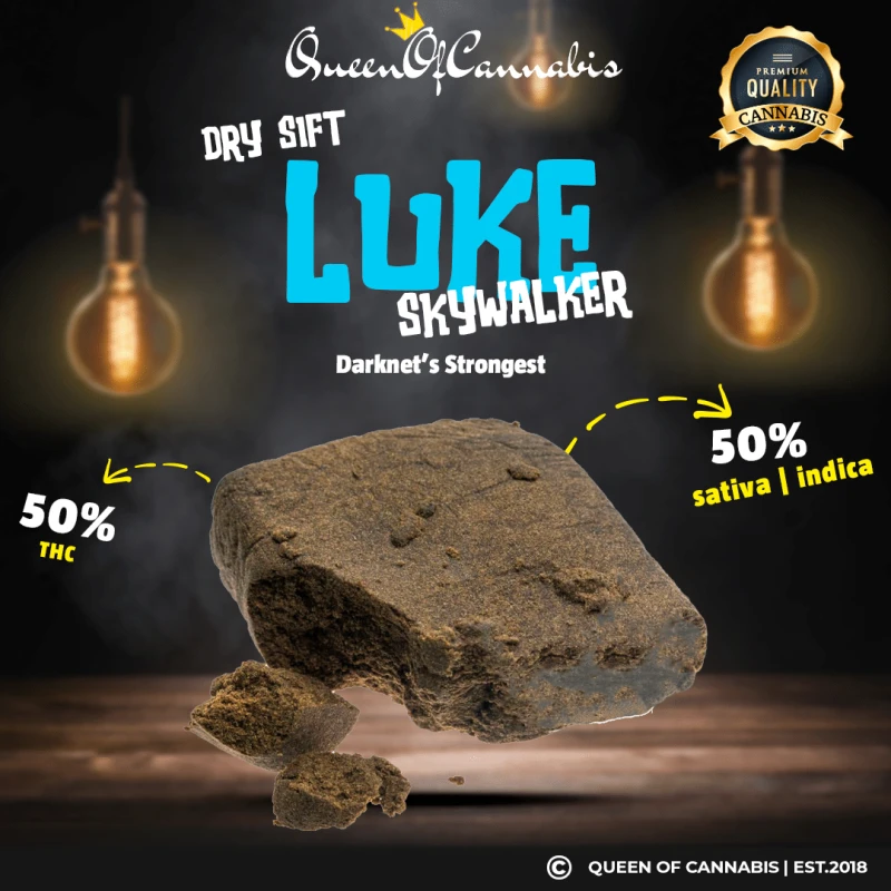 Queen's Luke Skywalker hash is an 50/50 strain that is well known for its extreme relaxing Effects, and head-in-the-clouds euphoric high.