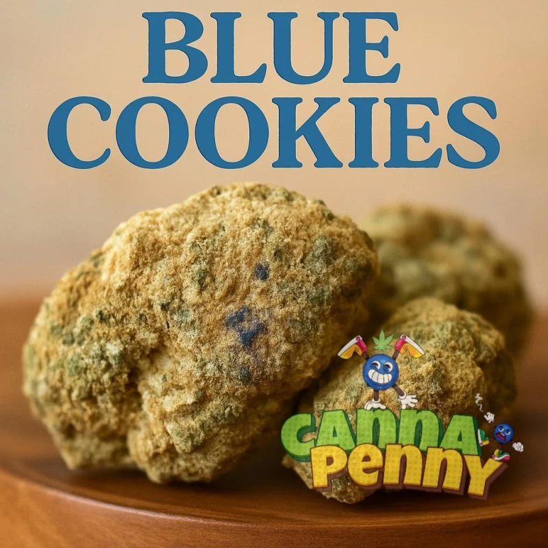 Blue Cookies is a 90% Indica / 10% Sativa hybrid with THC level around 24% and CBD under 2%. With a body-heavy buzz and an energizing cerebral effect, it's perfect for treating anxiety, low mood, headaches, irritability, and chronic pain. This award-winning strain has a sweet, smooth flavor of orange, earth, and candy, with a signature cookie-like aroma. Its dense, blue-tinted nugs are covered in resinous trichomes. A true heavyweight in THC potency, Blue Cookies is a top choice for those seeking serious relief and a delicious smoke.