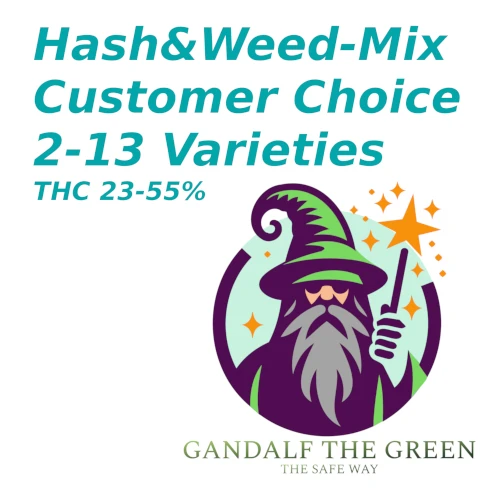 Why settle for less when you can create your own perfect mix? With us, you have the freedom to put together your individual mix package according to your preferences – from a selection of 5 premium weed strains and 8 high-quality hash strains!