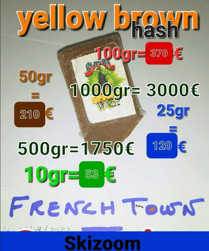 EN:The yellow, everyone knows, there are 2 kinds: the foamy yellow which remains yellow, and the brown yellow because in fact it is yellow at the beginning but the heat makes it brown. In France, most smokers want the foamy yellow, because it mixes easily with tobacco. The brown yellow is much less successful, it is less expensive and yet it is often stronger in THC.