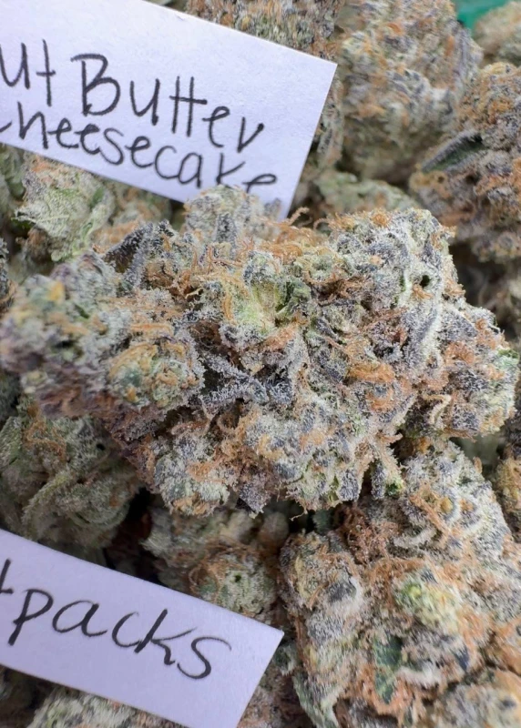 "PeanutButter CheeseCake" is an indoor grown, high tier, evenly balanced hybrid strain (50% indica/50% sativa) created through crossing the classic "PeanutButter Cookies" x "CheeseCake" strains! Named for its amazing flavor and celebrity heritage, "PeanutButter CheeseCake" is the perfect choice for any discerning hybrid lover! Like its name very much implies, "PeanutButter CheeseCake" has a sweet, savory/sour, and cakey flavor, with hints of cheese-like undertones! The aroma is identical to its flavor profile! The "PeanutButter CheeseCake" high will wash over you a few moments after your final high, beginning in the limbs and spine with a heavy tingle that's both stimulating, and soothing at the same time! This bud is a mix of different colored vibrant greens, with bright blue/purple undertones, lots of vibrant orange hairs, and very frosty white crystal trichomes! The nugs are the perfect medium size, with some larger and smaller nugs here and there! The structure is fluffy and tropical like - Definitely a savory explosion waiting to be smoked wizard fam!