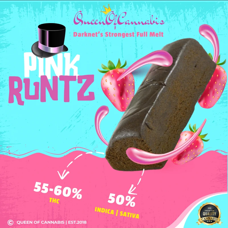 Stelle dich auf ein exquisites Erlebnis ein mit Pink Runtz, einer seltenen und fesselnden gleichmäßig ausgewogenen Hybrid-Sorte. Dieses außergewöhnliche statische Haschisch bietet ein einzigartiges sinnliches Erlebnis, das dich in einen Zustand der Glückseligkeit und vollständigen Entspannung versetzt. Mit seinem süßen und fruchtigen Kirschbeeren-Geschmack, begleitet von einem Hauch von saurer Süßigkeit, verführt Pink Runtz deine Geschmacksknospen. Die euphorische Hochstimmung und körperliche Entspannung machen Pink Runtz zur idealen Wahl zur Behandlung von Depressionen, chronischem Stress oder PTBS, Stimmungsschwankungen, Übelkeit oder Appetitlosigkeit und chronischer Erschöpfung. Mit einem durchschnittlichen THC-Gehalt von 55-60% bietet diese Sorte sowohl Freizeitgenuss als auch therapeutische Vorteile. Mach dich bereit für das Außergewöhnliche mit Pink Runtz.