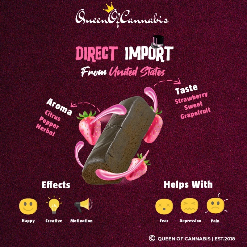 Introducing Pink Runtz, a rare and captivating evenly balanced hybrid strain. This exquisite static hash offers a unique sensory experience that will leave you feeling blissed out and completely relaxed. With its sweet and fruity cherry berry flavor, accompanied by a hint of sour candy, Pink Runtz tantalizes the taste buds. The high-flying euphoria and physical relaxation provided by Pink Runtz make it an ideal choice for treating conditions such as depression, chronic stress or PTSD, mood swings, nausea or appetite loss, and chronic fatigue. With an average THC level of 55-60%, this strain delivers both recreational enjoyment and therapeutic benefits. Get ready to indulge in the extraordinary with Pink Runtz static hash.