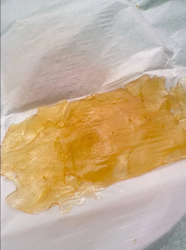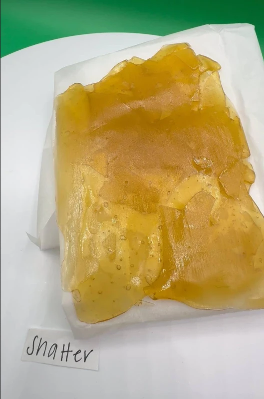 -Thick, golden, gassy-nosed, see-through, glass looking concentrate that is the original concentrate .. Our shatter gets goopy and thick looking when directly heated up .. This is another tasty, potent, flower derived concentrate that is guaranteed to get you extra high (NON-CRC) .. I'd say shatter belongs in a rig, cause that's like bread and butter; but you can def break up pieces of shatter and stuff them in a blunt! Certain strains/batches may be slightly darker or lighter than other ones .. This is due to us not using CRC to change colors!